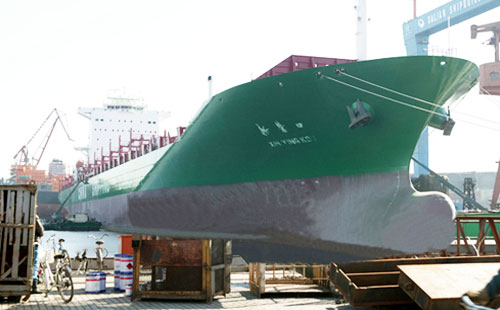河鋼舞鋼是國內(nèi)通過船板認(rèn)證品種最全、級別最高的廠家,先后通過中、美、英、法、德、日、韓、挪威、意大利等九國船級社認(rèn)證,年產(chǎn)高強(qiáng)度級別船板50多萬噸,圖為使用河鋼舞鋼鋼板建造的“新營口”號(hào)輪船。